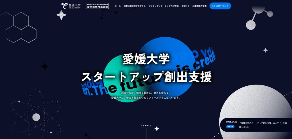 「愛媛大学スタートアップ創出支援」Webサイトを公開しました