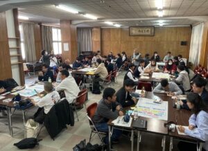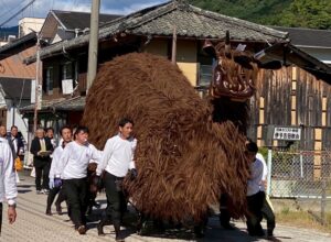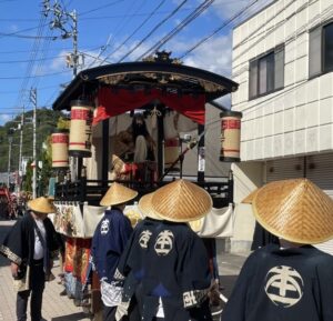 11月3日(祝)は、愛媛大学地域創生イノベーター育成プログラム南予の講義で、宇和島市吉田町の秋祭り「吉田祭のお練り行事」(令和7年3月に、愛媛県内で3例目の国指定無形民俗文化財に指定)のフィールドワークを実施しました。会場は地元吉田高校の会議室をお借りして、1コマ目は愛媛大学地域レジリエンス学環の芝大輔准教授による講義「災害の世代を生き抜く産官学民連携~全世代への防災教育~」。2018年の西日本豪雨で被災した吉田地域を会場に、南海トラフ地震等の大規模災害が発生に備えた防災、教育等の必要性をご講義いただきました。2コマ目からは、本センターの大本敬久副センター長による吉田祭の継承を考える講義です。愛媛大学地域創生イノベーター育成プログラム南予の受講生24名と、吉田高校の生徒で「地域課題の解決」に興味のある10名が合同参加して、講義が行われました。まずは「吉田祭のお練り行事」の概要、歴史、地域的特徴を解説し、その後、参加者全員で祭りを見学したり、祭りの担い手、観客やアンケートをとったり、聞き取りをしたりしました。見学後には吉田高校の会場に戻り、グループワークで吉田祭の現状・課題、今後の行動について考えてみました。地元吉田町のみなさま、祭りに参加された関係者のみなさま、そして吉田高校のみなさま、お世話になりました。