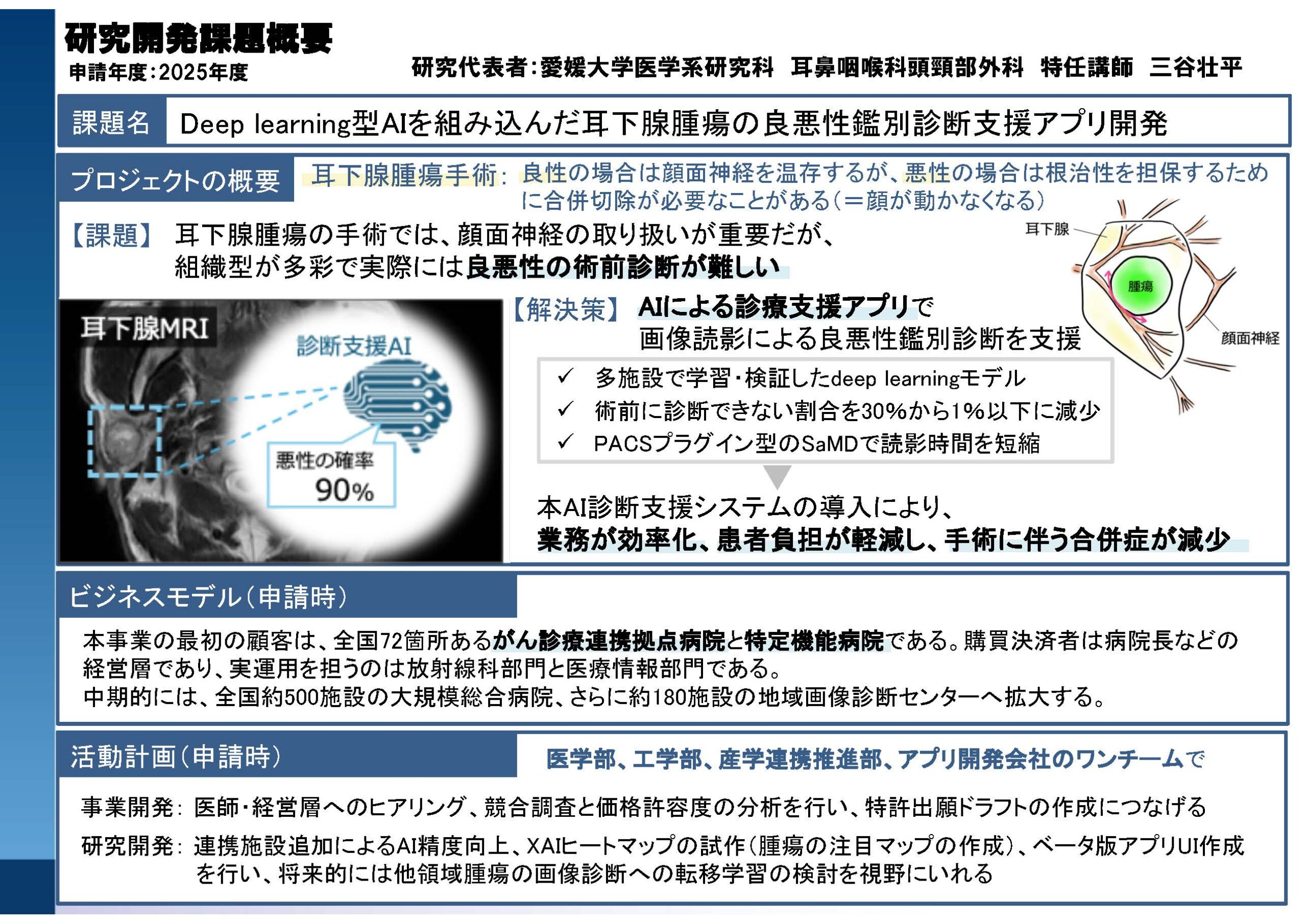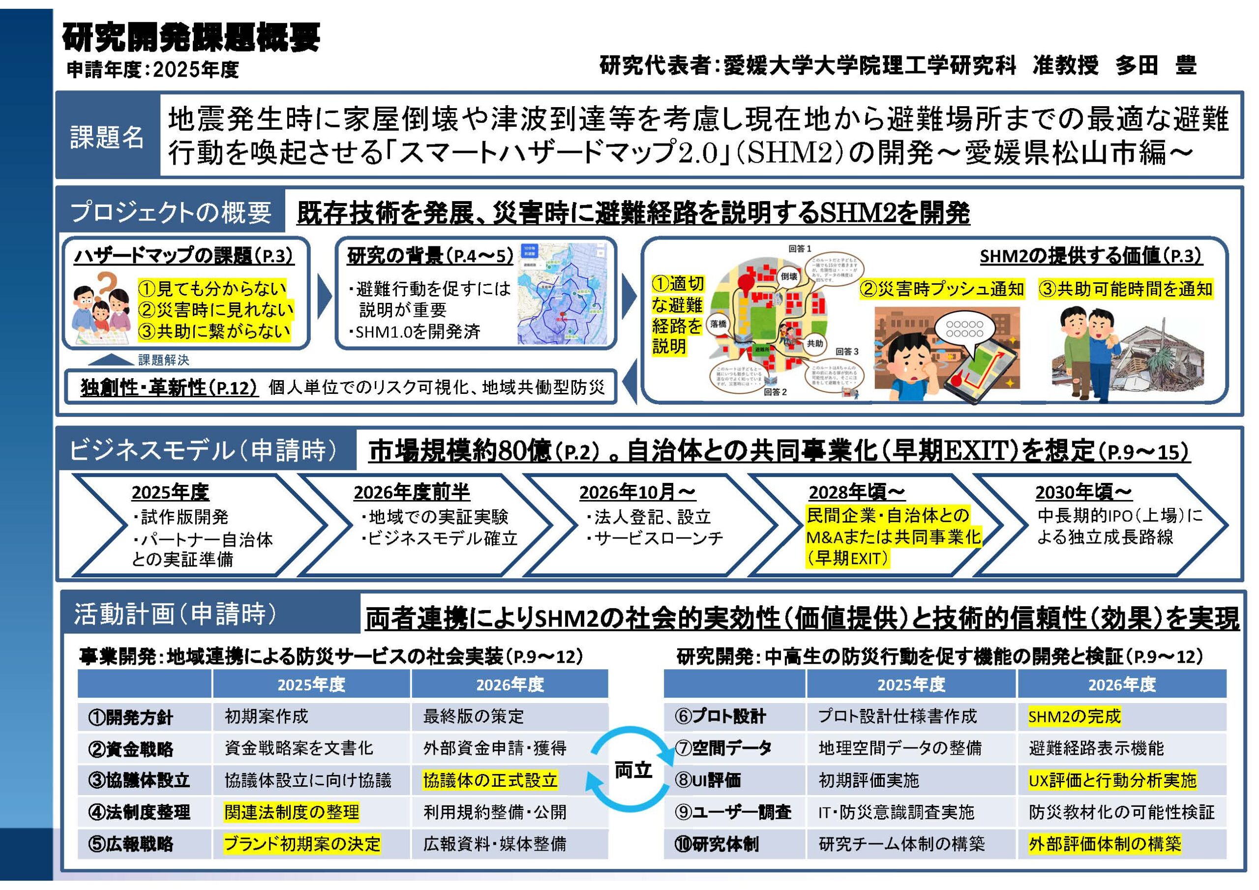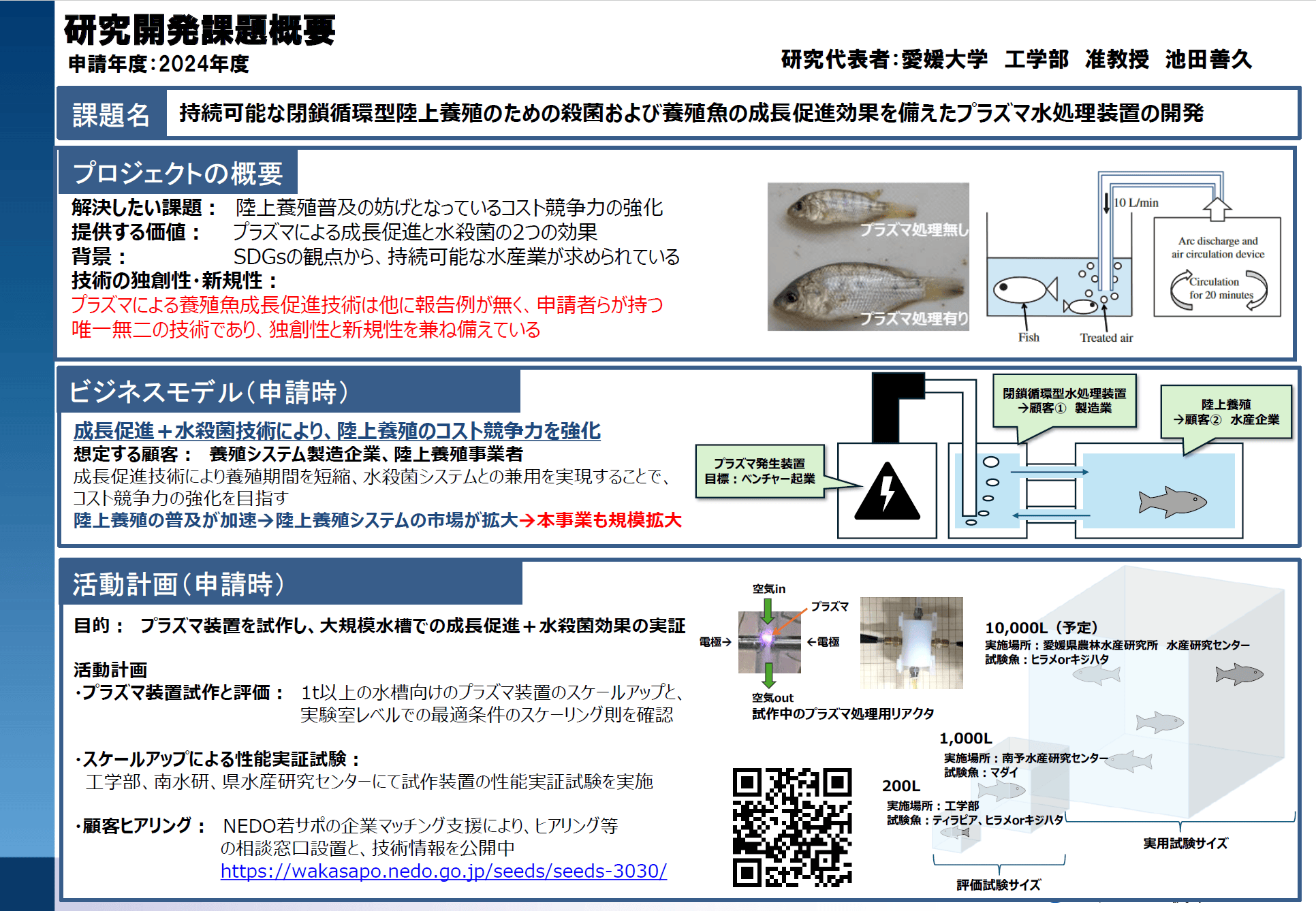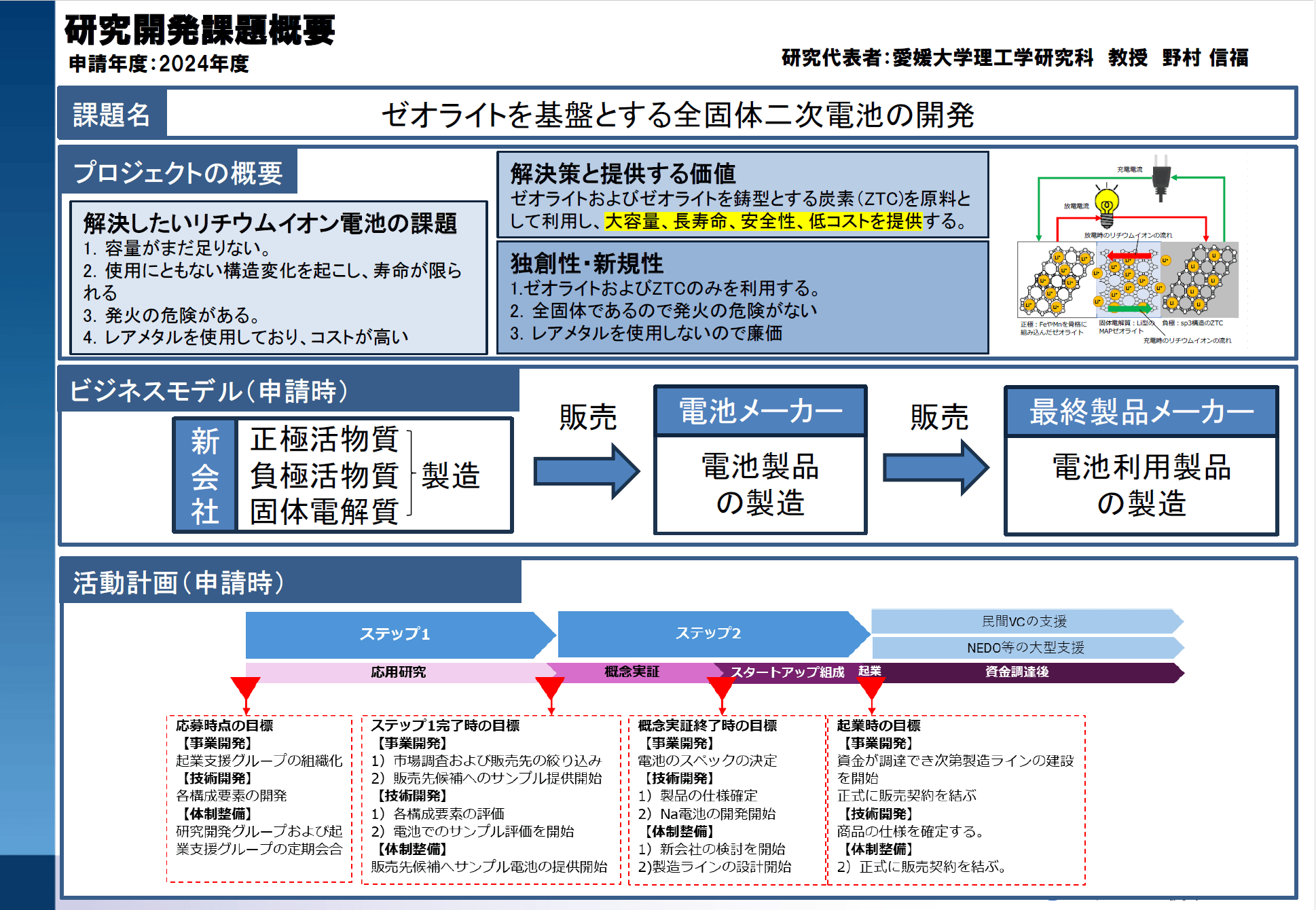 愛媛大学の研究者であること、起業意思があることが必須です。修士・博士課程の学生も応募可能ですが、学部生は不可です。