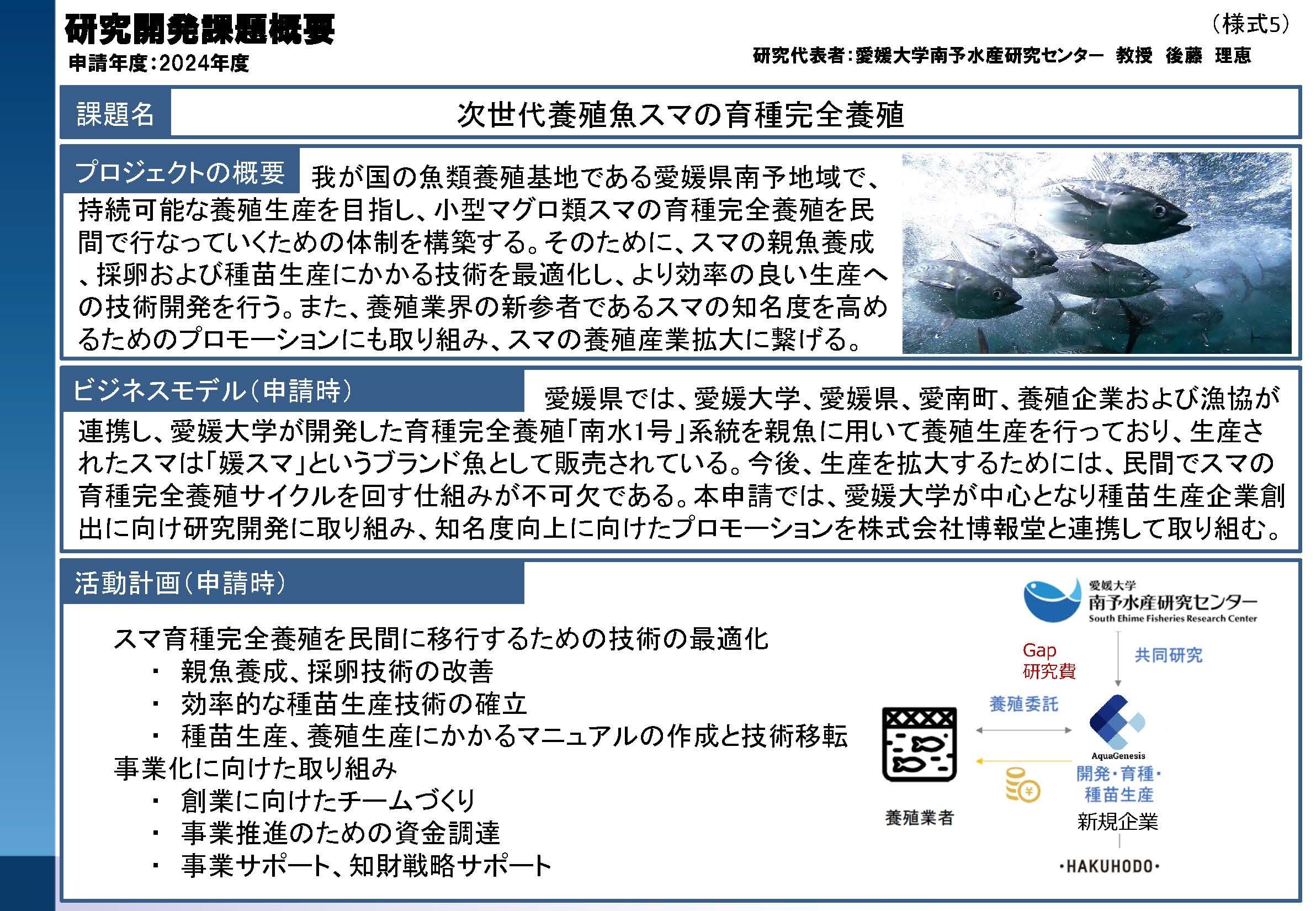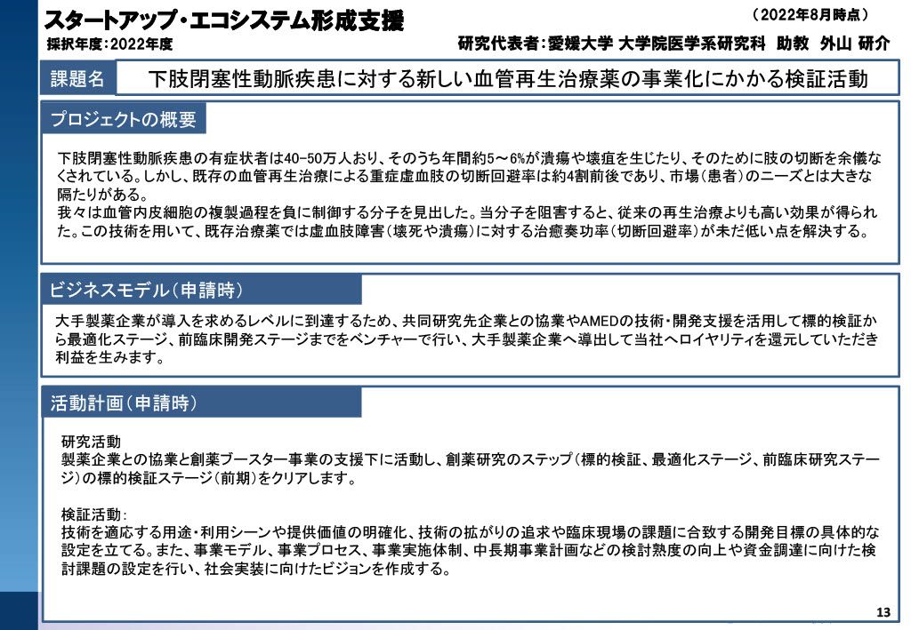 愛媛大学のPSI・GAPファンド採択状況